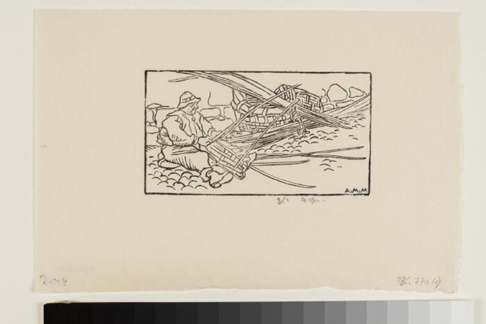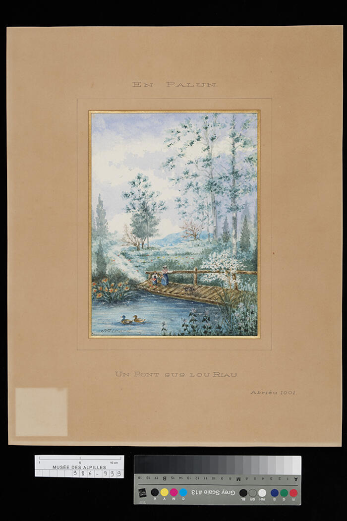 ‘En palun. Un pont sus lou riau" (Dans le marais. Un pont sur le ruisseau).